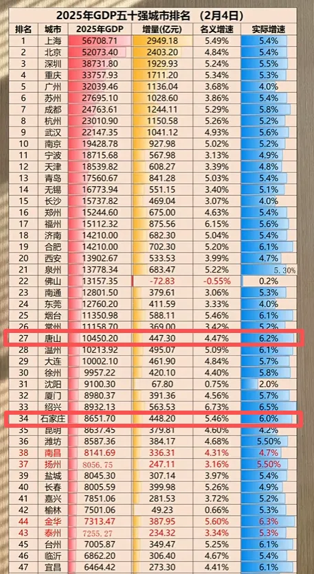 排名出来了!石家庄GDP由全国第40位上升至第34位!城镇居民收入增长36%!