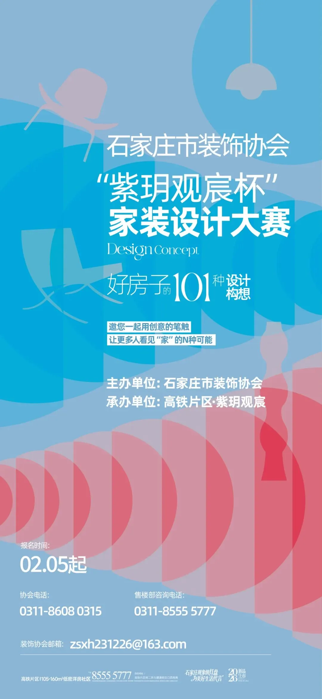 源于将美好生活前置的初心,石家庄市装饰协会“紫玥观宸杯”家装设计大赛将于2月8日正式拉开帷幕。本次大赛由石家庄市装饰协会主办、高铁片区・紫玥观宸承办,集结业内顶尖力量共同打造,以高规格设计赛事为平台,搭建链接“协会—设计师—家”的多元协同生态,共同擢升城市居住美学标准,让有温度、有质感的设计,成为滋养日常的恒久力量。