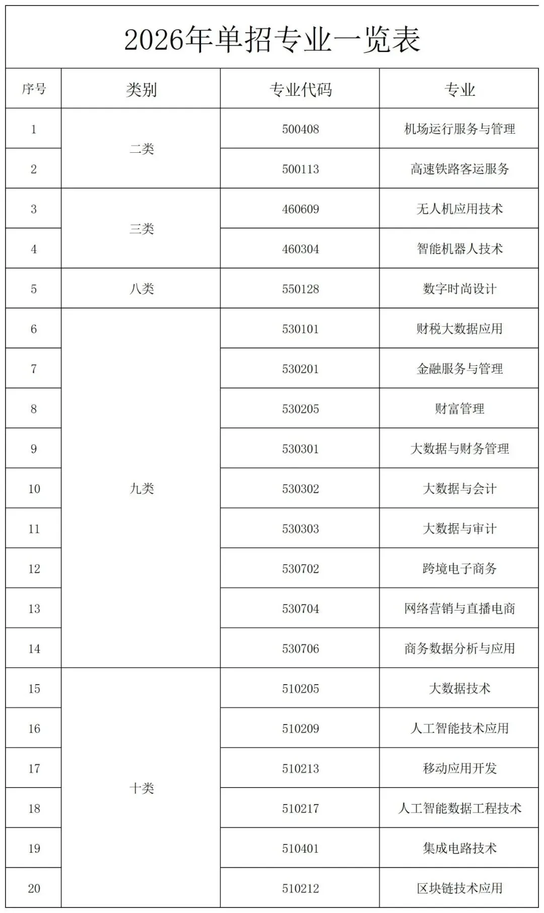 高职单招专业
