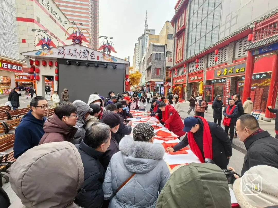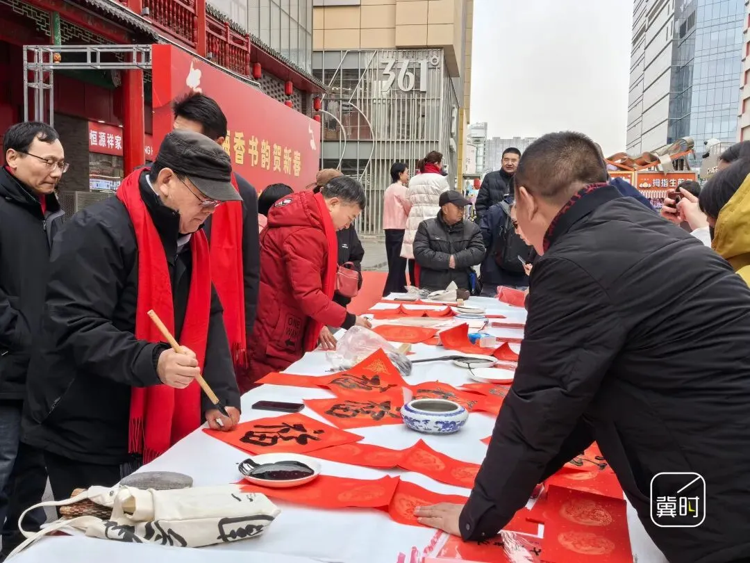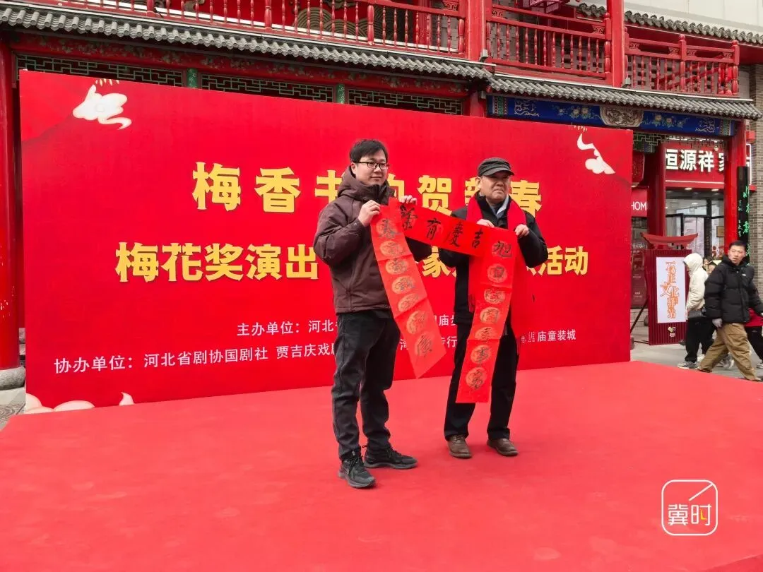与河北梆子的铿锵唱腔相伴的,还有河北省著名书法家现场送春联活动。原省文联副主席、省书法家协会副主席、著名书法家范硕,省文联副主席、省戏剧家协会常务副主席、著名书法家贾吉庆等书法名家现场挥毫泼墨,以笔墨传递祝福,免费为游客书写春联,把最真挚的新春祝福写进笔墨里,送到大家手中。一副副寓意吉祥的春联,不仅承载着对新春的美好祝愿,也成为一份份独具匠心、充满温情的新春纪念。