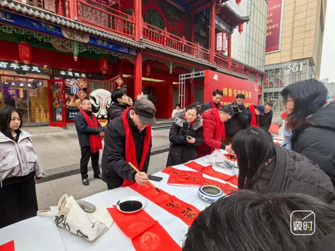 新春将至,年味渐浓。2月6日,在承载着省会百年烟火气与城市文脉的石家庄湾里庙步行街,一场集结了我省戏曲与书法界名家的“梅香书韵贺新春”传统文化盛宴,融合戏曲艺术与书法送福,让传统艺术在街区鲜活绽放,为新春佳节注入了浓浓的文化底蕴与年味。