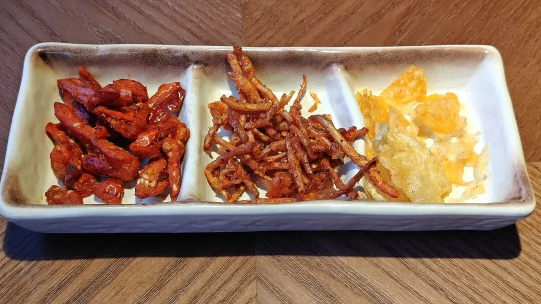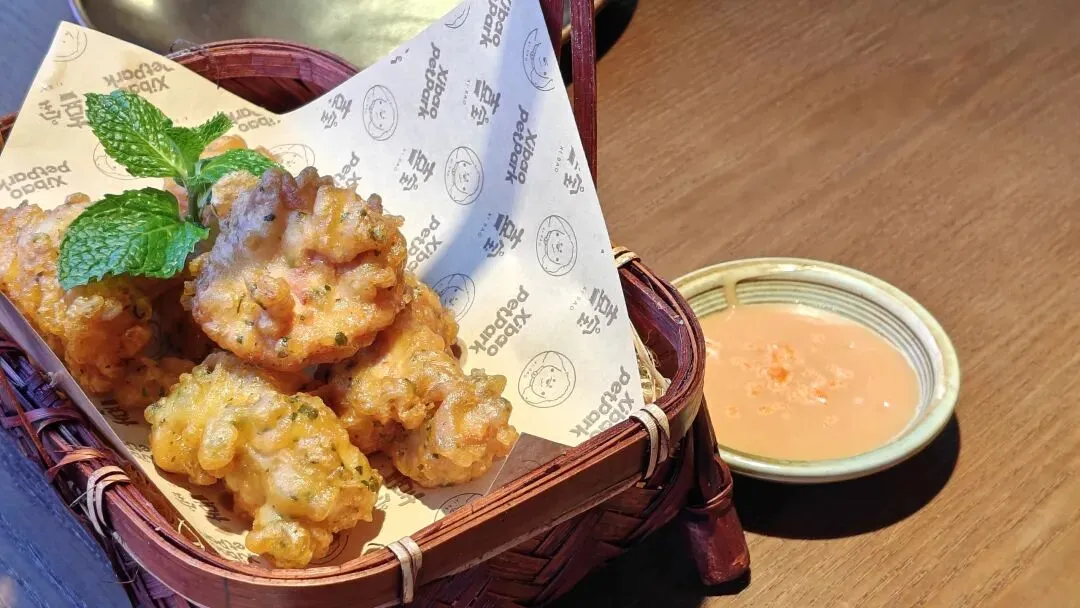 点了个小吃,奶酪炸鸡,28元,有6块,淀粉比较薄,肉质还可以,搭配了蜂蜜蘸料,吃着还可以,不腻。