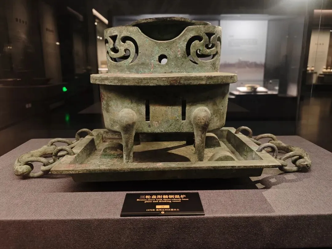 邢台博物馆:汉代三轮盘附觞铜温炉