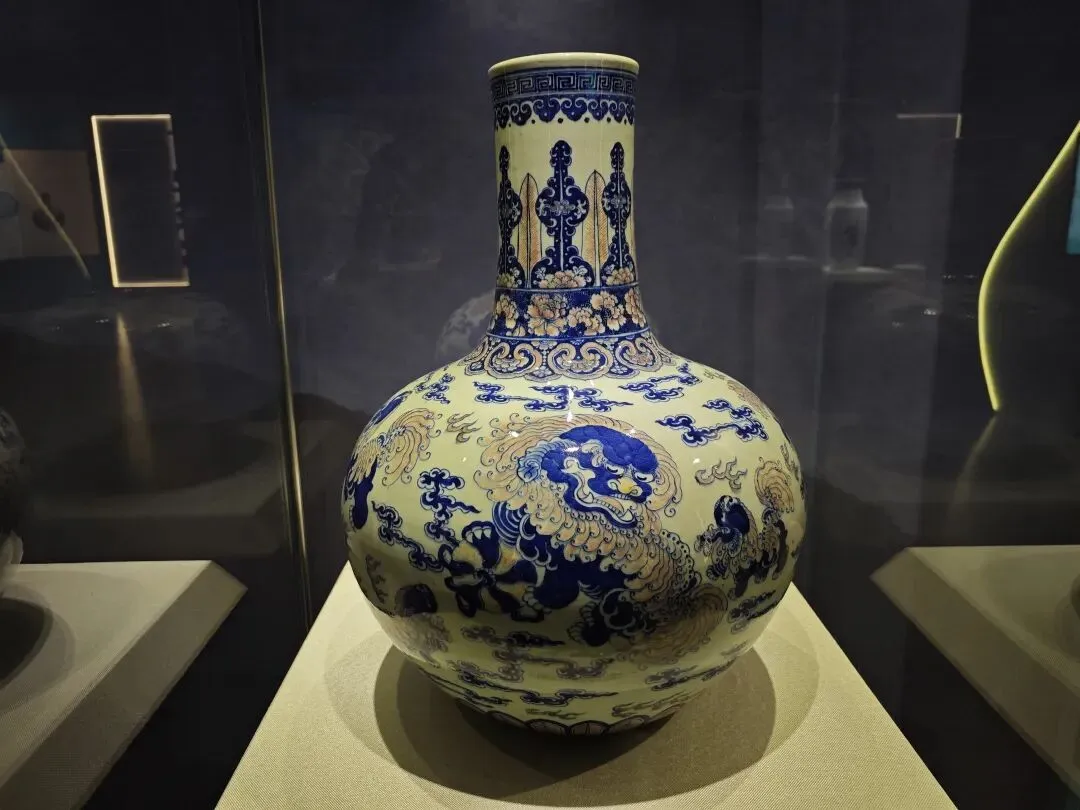 石家庄市博物馆:清代青花釉里红九狮戏球纹天球瓶