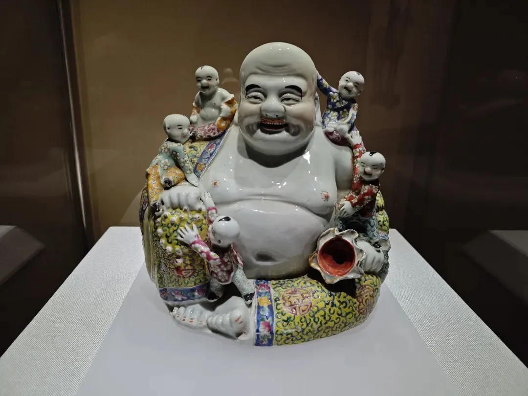 石家庄市博物馆:民国粉彩布袋和尚童子坐像