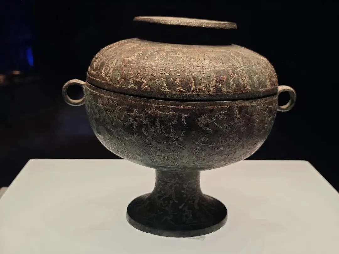 河北博物院《战国雄风——古中山国》:战国狩猎宴乐图铜盖豆