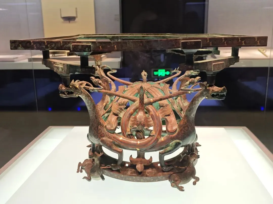 河北博物院《战国雄风——古中山国》:战国错金银四龙四凤铜方案座