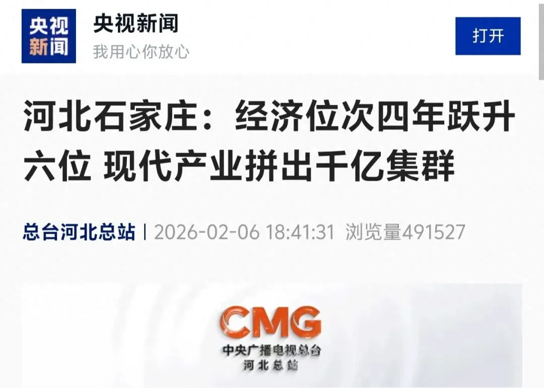 2026年2月6日,一则来自央视新闻的深度报道,将石家庄推至全国视野的聚光灯下。一篇千余字的长文,细密梳理了这座城市自2021年起,经济总量连续跨越 六千亿、七千亿、八千亿 三大关口的“三级跳”轨迹。这篇题为《河北石家庄:经济位次四年跃升六位,现代产业拼出千亿集群》的报道,不仅记录数字,更试图破译数字背后,一座北方省会城市全力奔跑的“动力密码”。