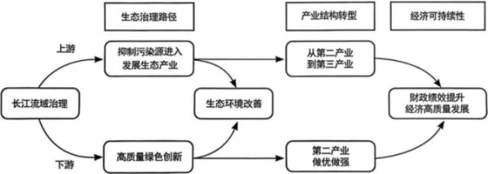 长江流域治理是国家始终关注的重大战略问题。2016年9月,中共中央政治局审议通过并正式印发《长江经济带发展规划纲要》,要求长江经济带走生态优先、绿色发展之路,促进了长江流域生态环境有效改善。长江上下游地区因地制宜选择差异化生态治理路径,推动上下游地区形成不同的产业结构转型,促进了长江流域环境质量提升与经济可持续发展(如图所示)。据此完成11~13题。