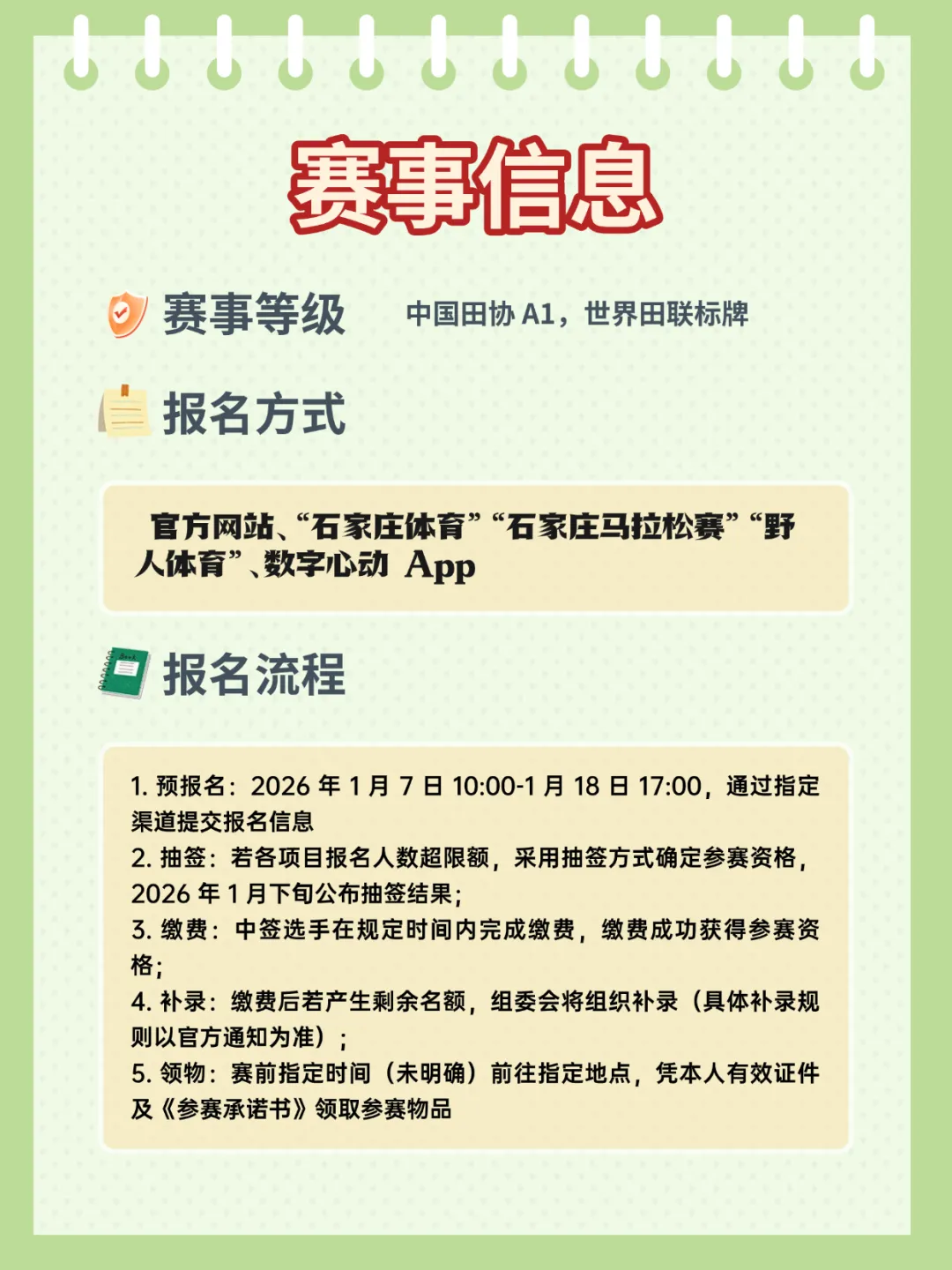 赛事名额 | 河北省-石家庄市 | 2026石家庄马拉松二轮抽签结果昨日公布!没中签的看过来,康比特赞助商特邀名额~