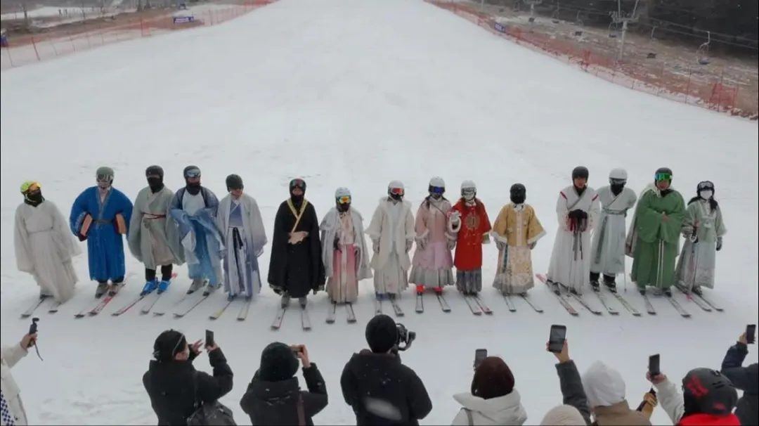 秦皇古道滑雪场:国风汉服滑雪专场引爆京津冀社交圈,爱好者们身着襦裙、披风在雪道滑行,古风与白雪相映成趣,活动不仅仅是一场滑雪,更是一次传统文化与现代运动的完美碰撞。