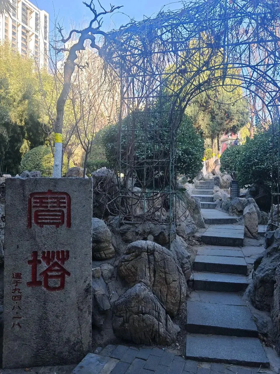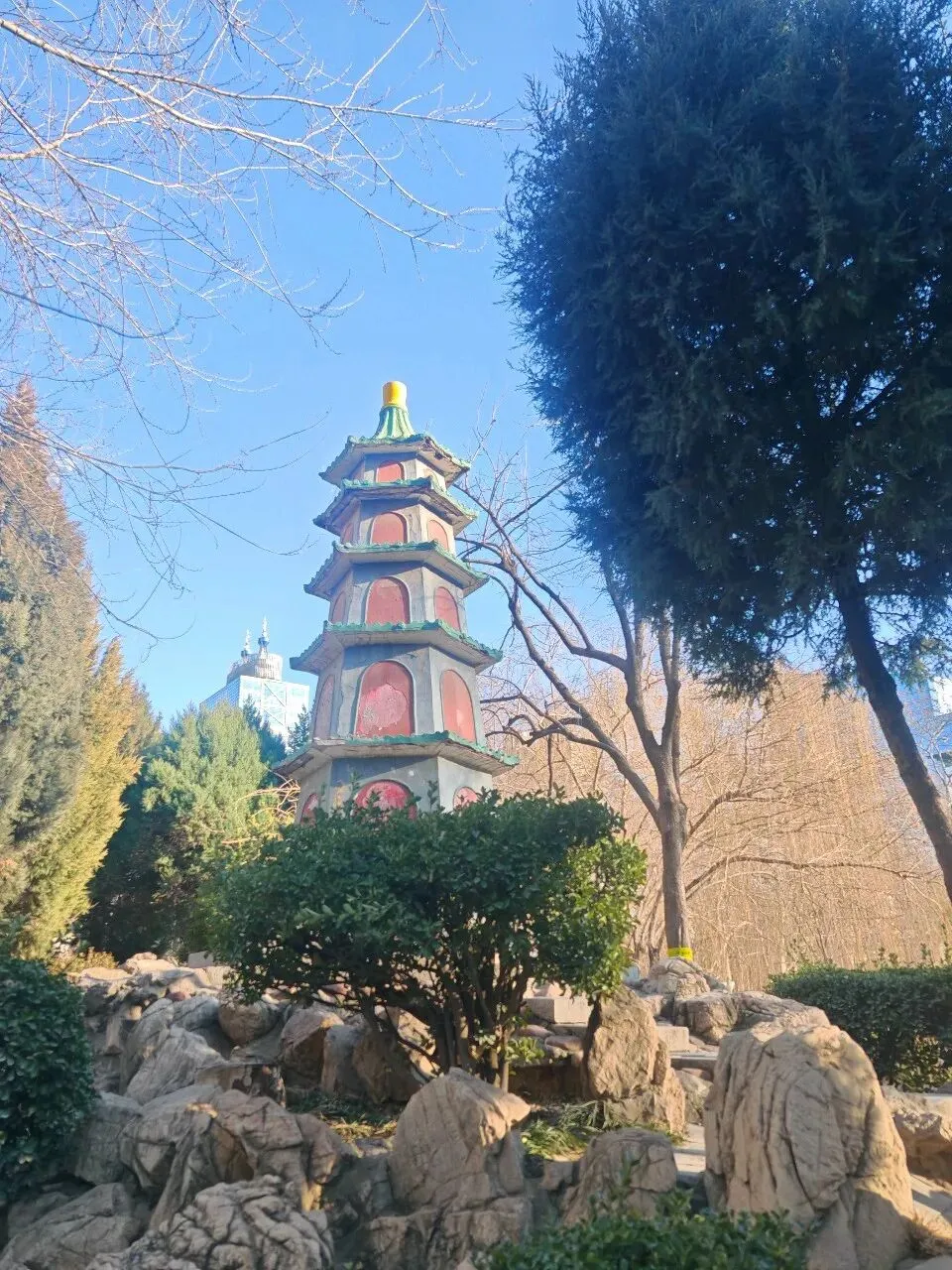 园中景色是典型的江南苏式园林风格,小巧一步一景,还有一个年纪和我差不多大的宝塔。公园北侧有个古代建筑就是石家庄园林局,和公园景色很搭。
