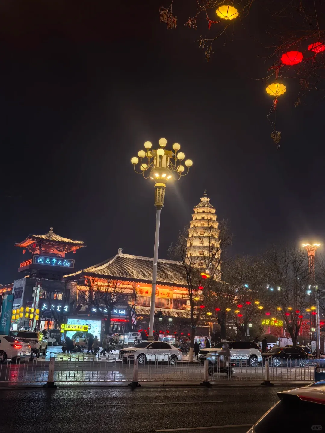 到了晚上,去塔影咖啡。灯光打在古塔的砖面,影子一点点变深。点一杯拿铁,楼下就是新旧交织的街灯,那种“古城的现代感”并不突兀,反倒带点浪漫。