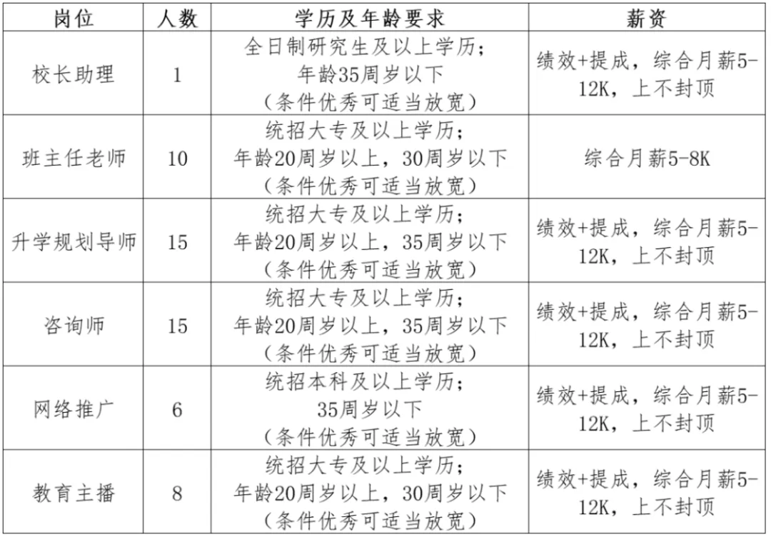 具体招聘岗位、人数、条件、要求等如下: