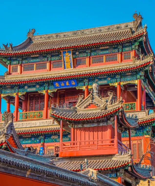 晚上拍大慈阁,灯偏黄,别用闪光,会糊。