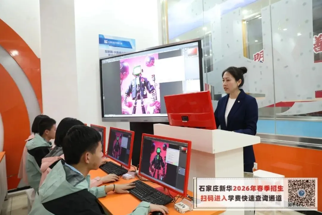石家庄新华电脑学校开设有AI游戏动漫、电商新媒体运营、工业机器人、AI电竞、鸿蒙开发、AI创意设计等热门专业,课程从基础学起,适合初高中生系统学习,更扎实地掌握一门技能。
