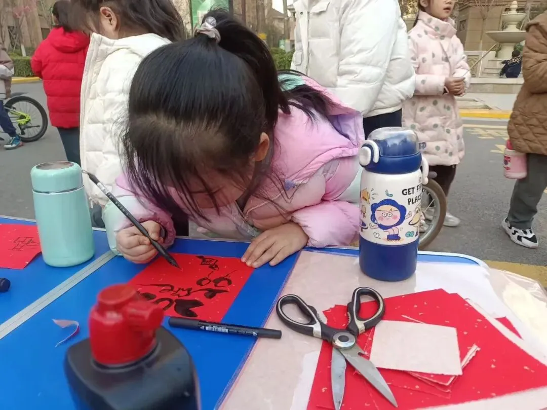 亲子互动区,茂森幼儿园开展写对联、写福字活动,萌娃们挥毫泼墨,在笔墨书香中感受传统文化魅力,喜迎新春佳节。