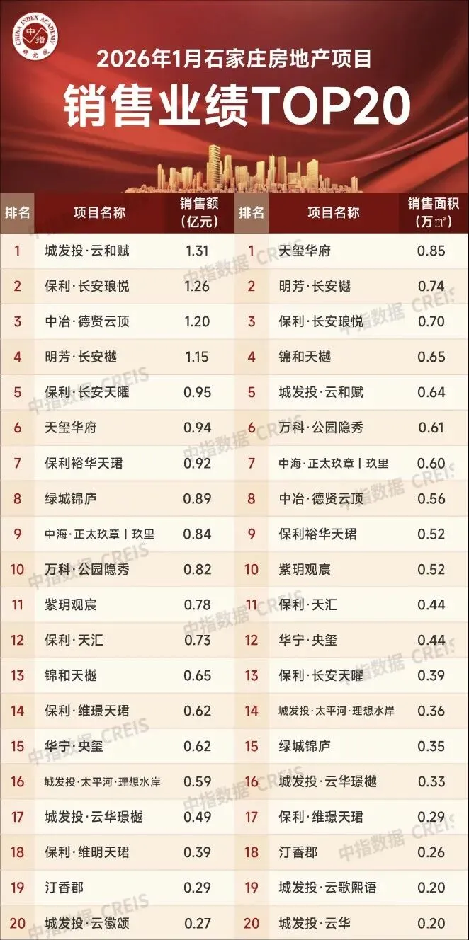 石家庄最新新房销售榜单出炉,来自克而瑞数据