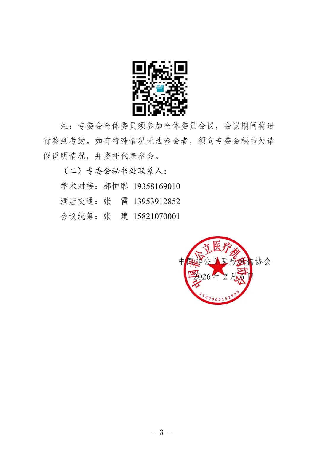 注:专委会全体委员须参加全体委员会议,会议期间将进行签到考勤。如有特殊情况无法参会者,须向专委会秘书处请假说明情况,并委托代表参会。