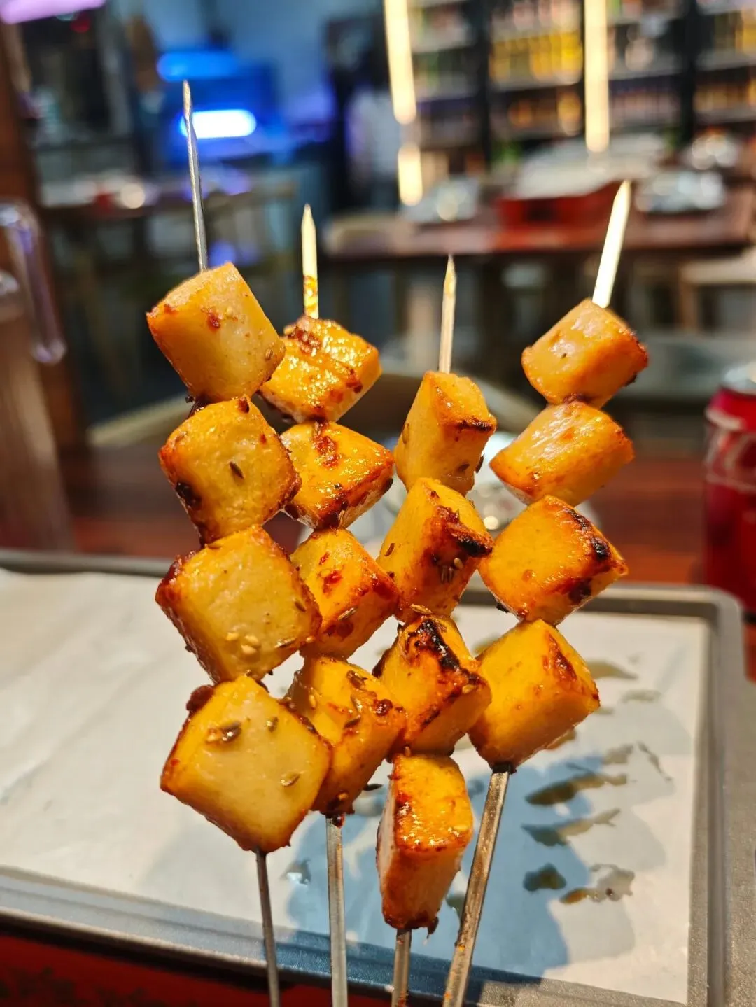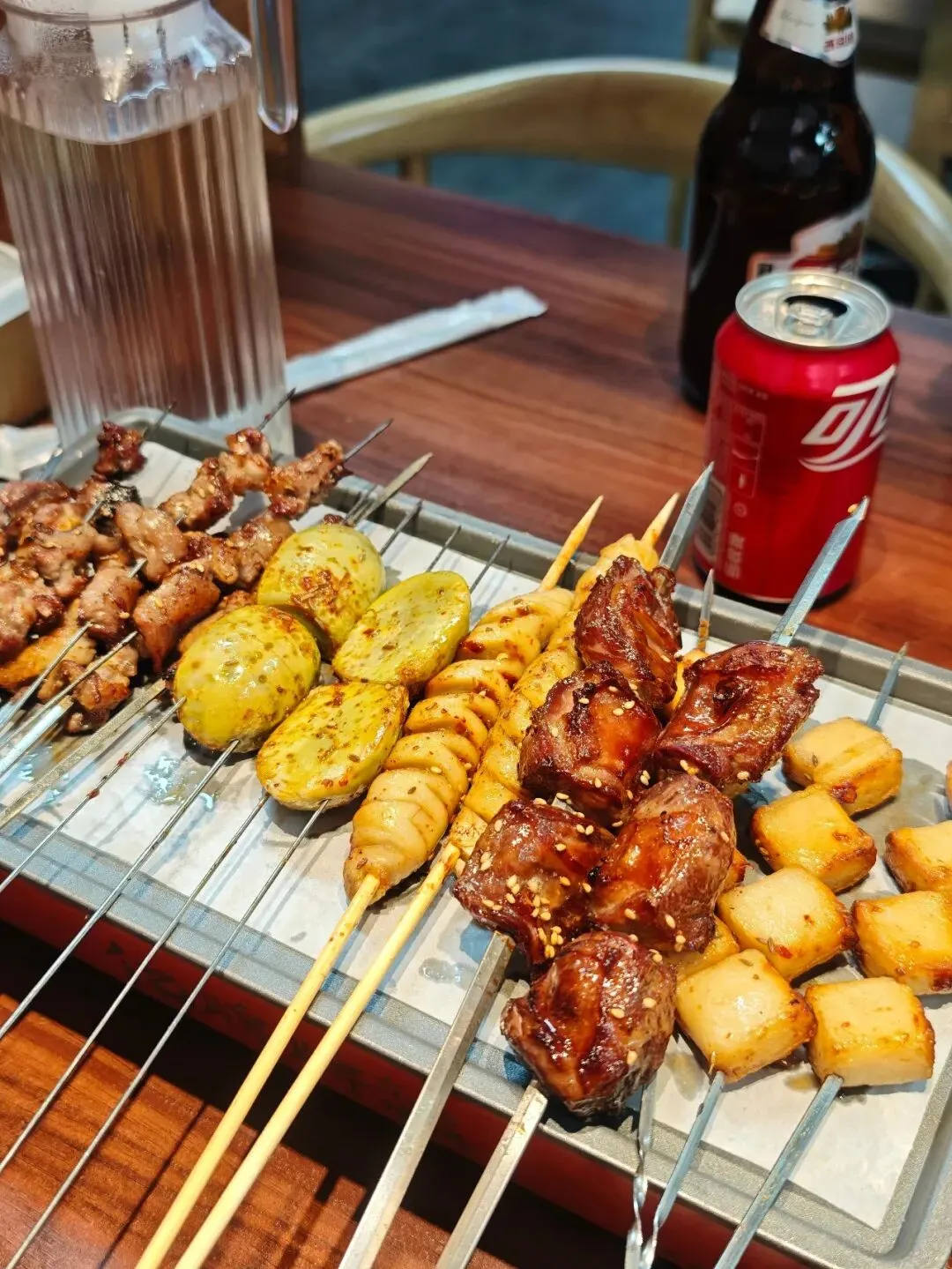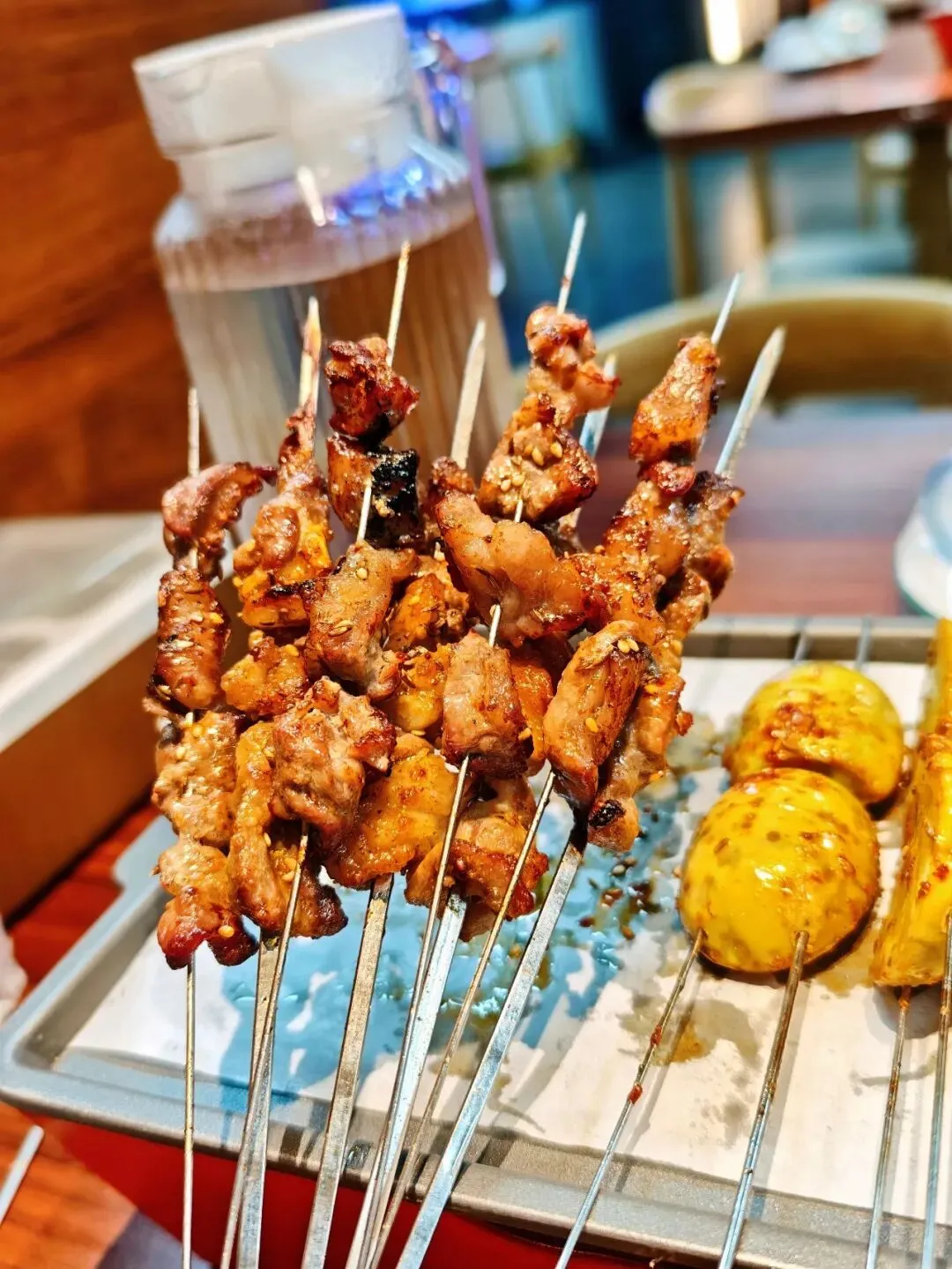 羊肉串现点现烤,肥瘦相间滋滋冒油,撒上孜然辣椒面香到跺脚!肉质鲜嫩不膻,炭火香直冲脑门!