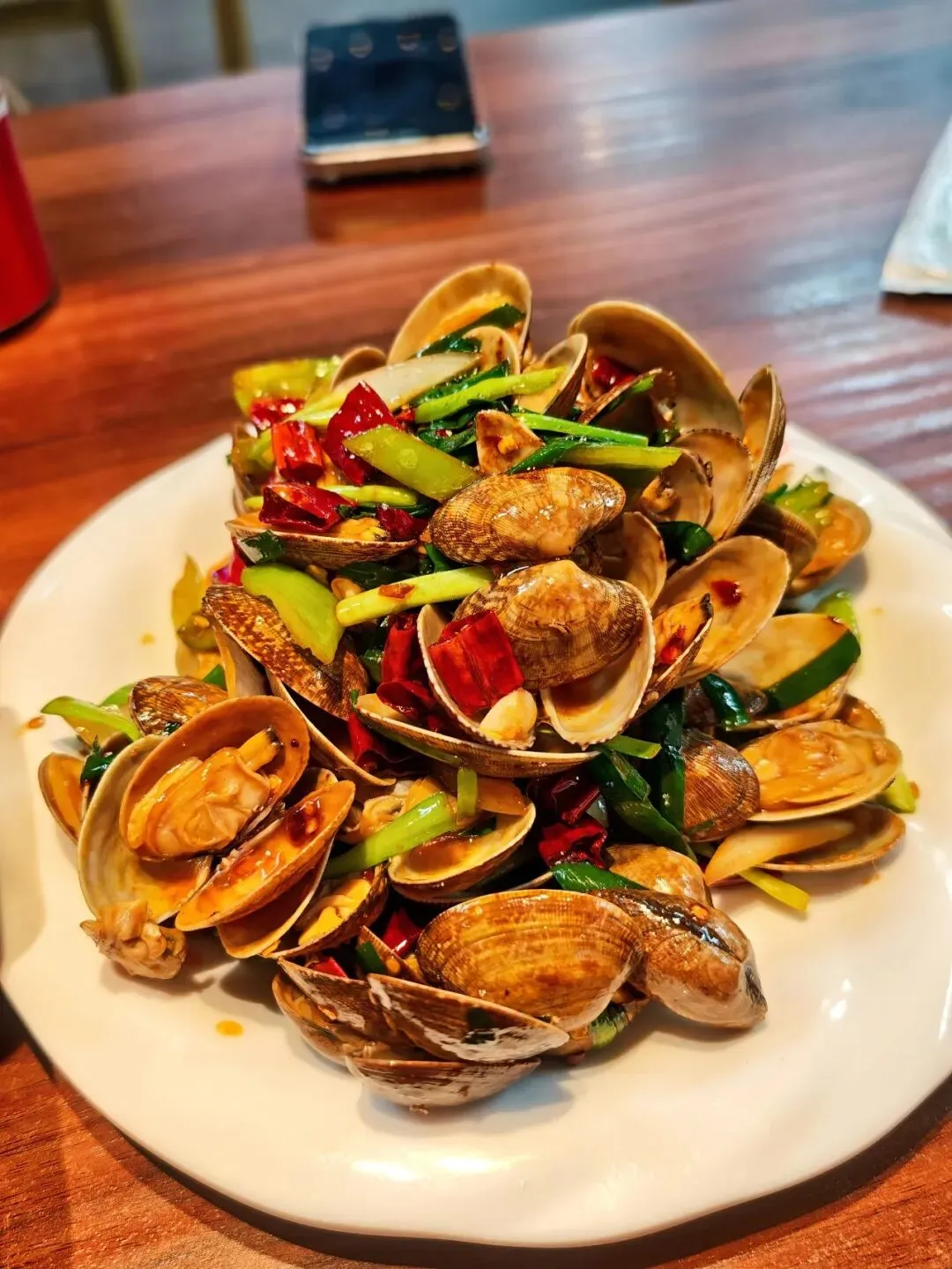 辣炒蚬子超级肥美,是我必点系列,绝对要尝尝!酱汁鲜辣过瘾,我一个人能干两盘~颗颗饱满浸透了蒜香辣酱,嘬壳的幸福感谁懂啊~