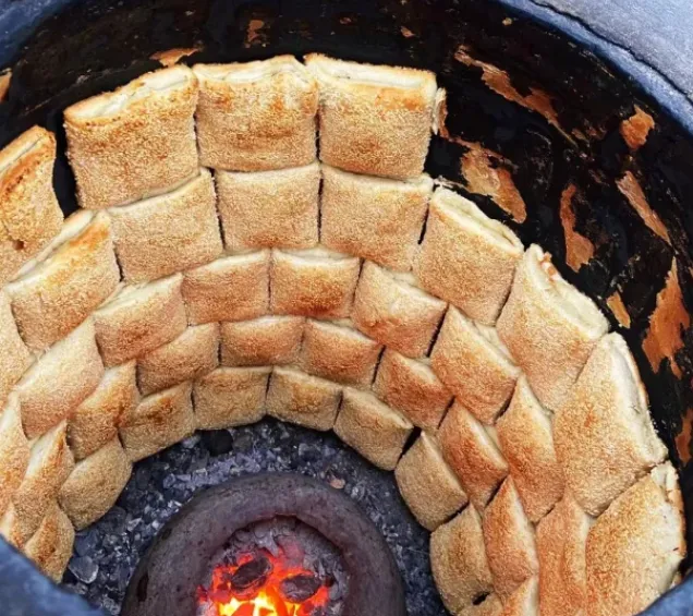这里的挂炉烧饼,是一绝。它不是那种油腻的酥,而是带着麦香和炭火气的脆。做法看着简单,其实全是功夫:发面要醒得刚刚好,炉火要温而不烈。师傅把沾满芝麻的面饼往炉膛内壁一贴,“滋”的一声,那是美味的序曲。烤好后,外皮金黄酥脆,咬一口掉渣,里面却是软乎的,夹上拆骨肉或者就在空口吃,越嚼越香,那是粮食最本真的味道。