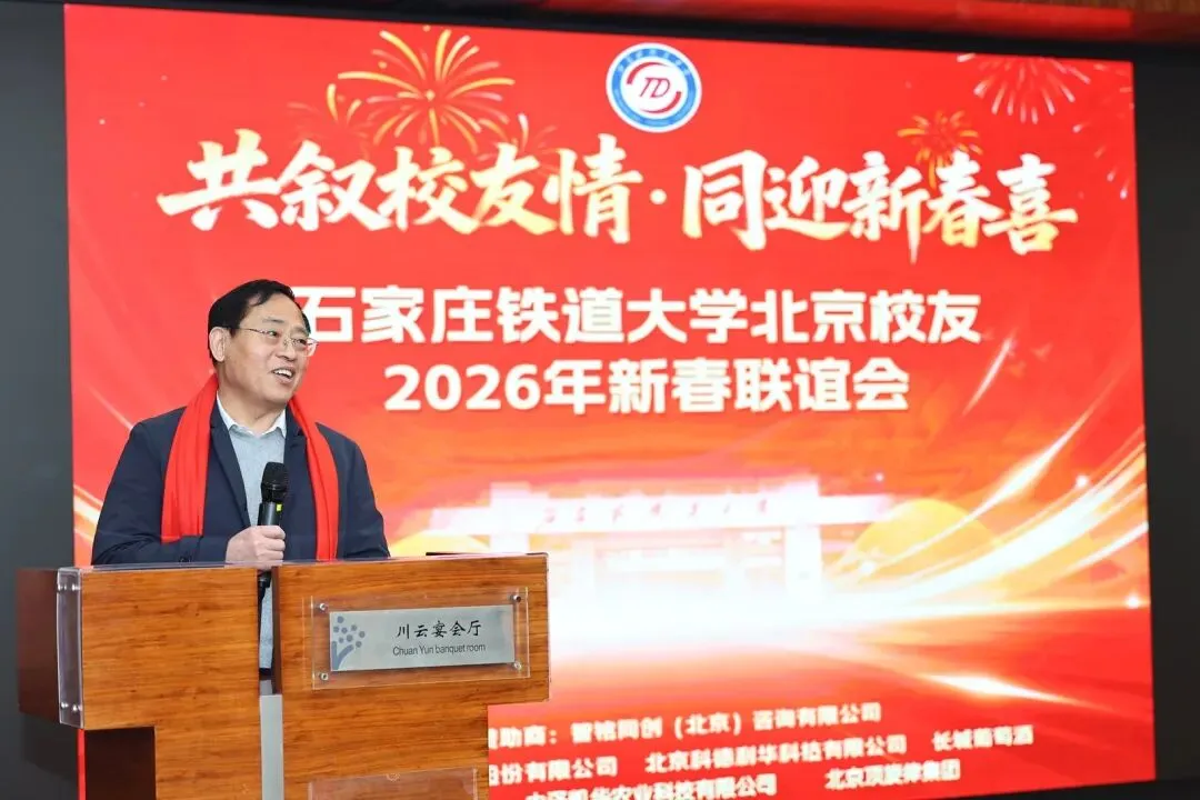 时序更替,春潮渐暖;同窗情谊,历久弥坚。 2026年2月7日下午,石家庄铁道大学北京校友2026年新春联谊会在北京铁道大厦温情启幕,以“共叙校友情,同迎新春喜”为主题,汇聚在京石铁大校友,共赴一场迟来却真挚的团圆之约——这是石家庄铁道大学北京校友联谊会的首次举办,一场盛满牵挂、联结情谊、共启新程的盛会,在欢声笑语中圆满落幕。