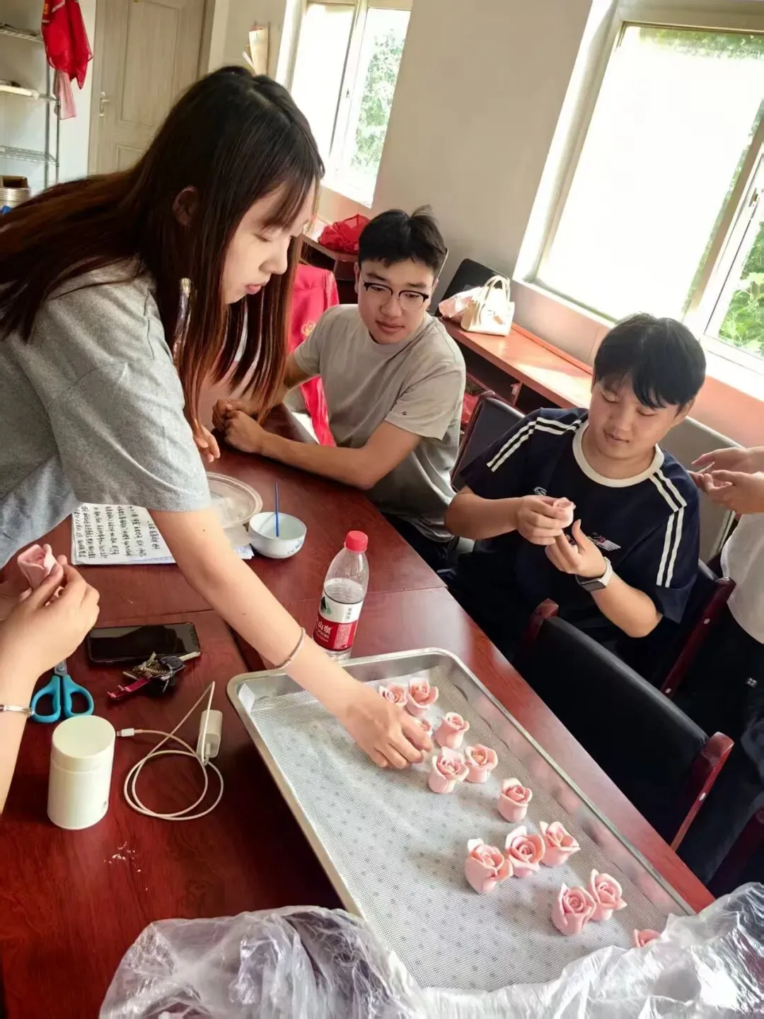 驿站最让人暖心的,还是那些充满烟火气的集体活动。每逢节日或是闲暇时光,驿站不定期组织大家一起包饺子、蒸包子。择菜、调馅、擀皮、包捏,一群来自五湖四海的年轻人围在桌前,手忙脚乱却不亦乐乎。有人擅长调馅,调出的味道鲜香可口;有人包饺子速度飞快,褶子捏得整齐漂亮;也有人是新手,包出来的饺子歪歪扭扭,却收获了大家善意的笑声。当热气腾腾的美食端上桌,大家围坐在一起,聊聊家乡的习俗、校园的趣事,原本互不相识的人,就这样在烟火气中变成了志同道合的朋友。