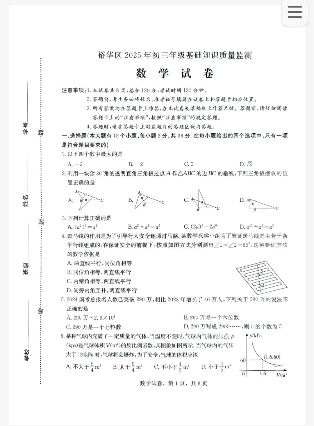 「2025年3月石家庄市裕华区一模」