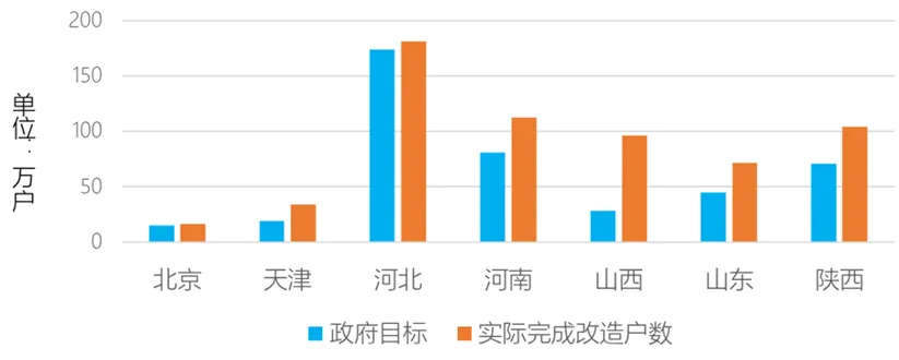 2017年12月,根据有关精神,发展改革委、能源局、财政部、环境保护部、住房城乡建设部、国资委、质检总局、银监会、证监会、军委后勤保障部制定了《北方地区冬季清洁取暖规划(2017-2021年)》,该规划指出57“鉴于北方地区冬季大气污染以京津冀及周边地区最为严重,‘2+26’重点城市作为京津冀大气污染传输通道城市,且所在省份经济实力相对较强,有必要、有能力率先实现清洁取暖。《规划》针对这些城市也提出了更高的要求,2021年,城市城区全部实现清洁取暖,县城和城乡结合部清洁取暖率达到80%以上,农村地区清洁取暖率60%以上。”很明显,于2021年底全部实现农村清洁取暖的河北已经超额完成任务。