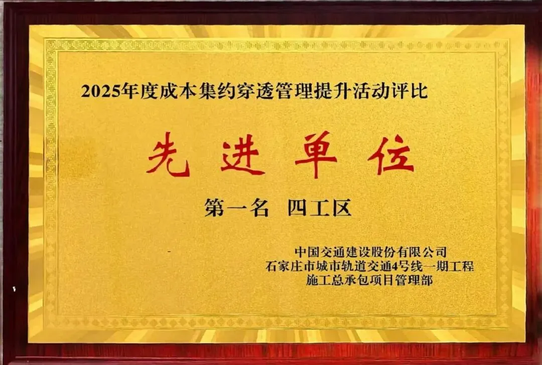 下一步,石家庄地铁项目将以此次夺冠为新起点,持续深化成本集约穿透管理,进一步强化设计优化与现场管控的联动,完善全员成本责任体系,在绿色化、智能化建设中探索更多降本增效新路径,全力打造 “履约有保障、质效双提升” 的标杆项目,为公司高质量发展贡献更大力量!