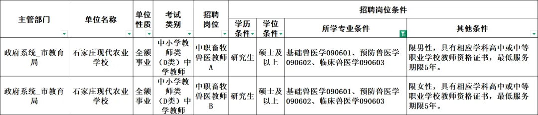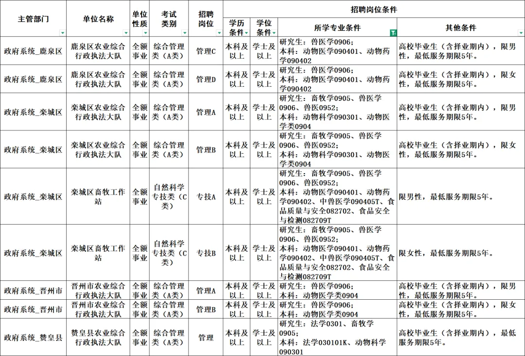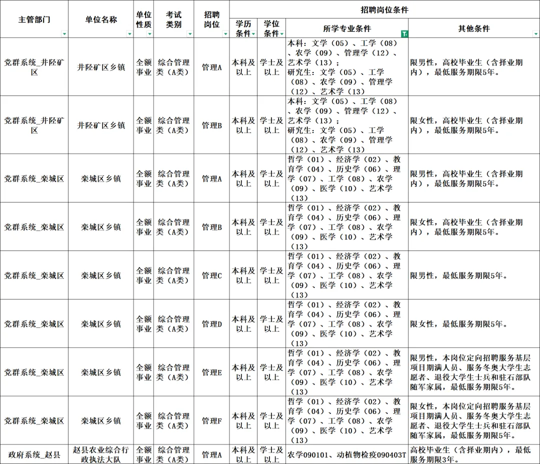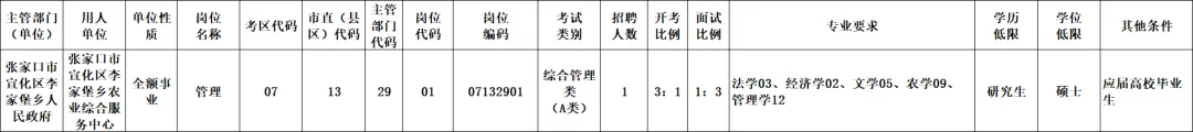 张家口市事业单位岗位信息表: