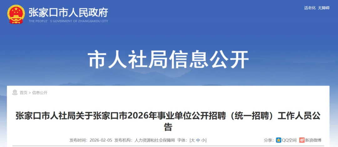 石家庄市2026年事业单位公开招聘(统一招聘)工作人员公告