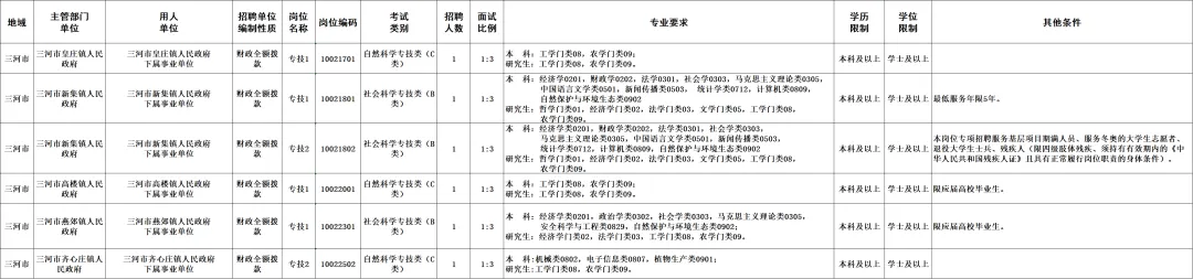 廊坊市事业单位岗位信息表: