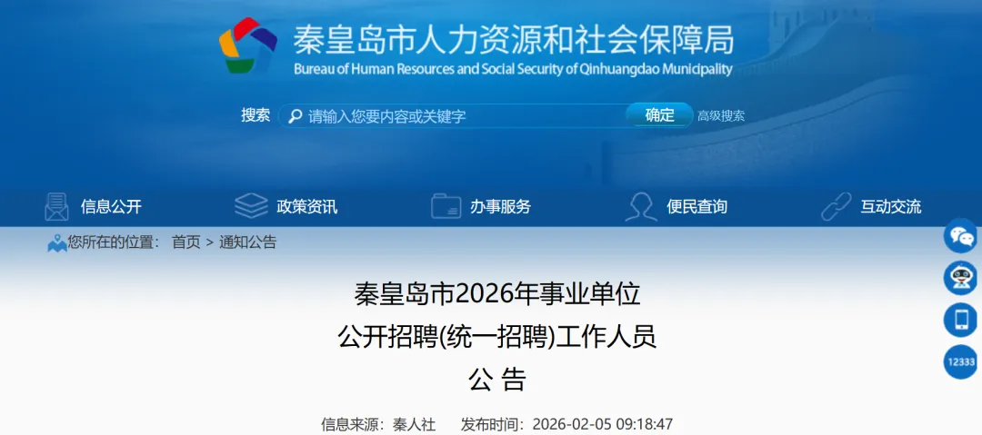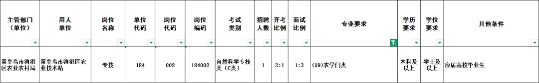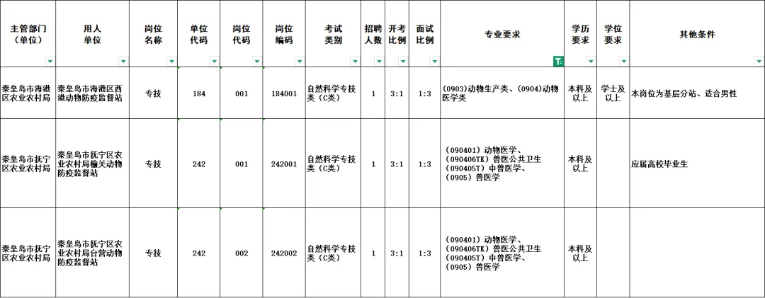秦皇岛市事业单位岗位信息表: