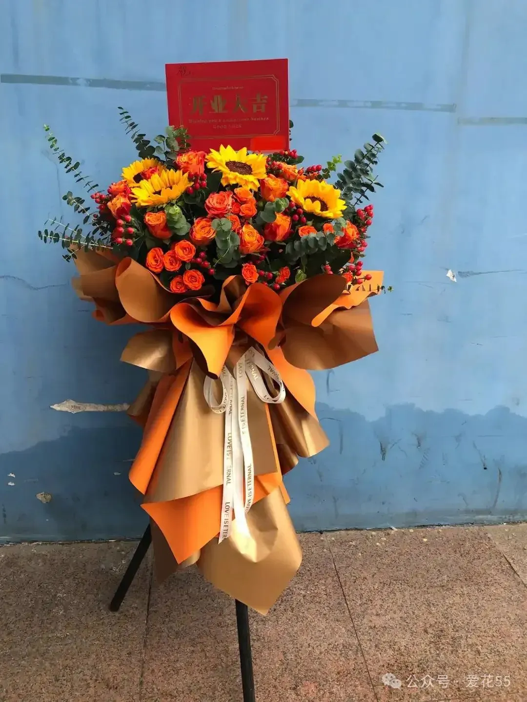 - 开业花篮速递到家:新店开张,不仅要红火,更要体面。大气磅礴的开业花篮,专人专车速递到家,祝您生意兴隆,场面十足。