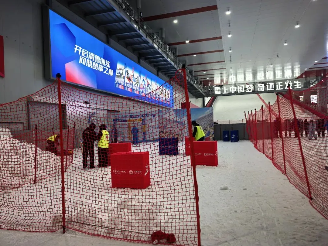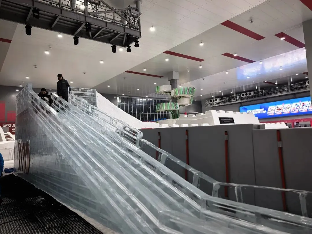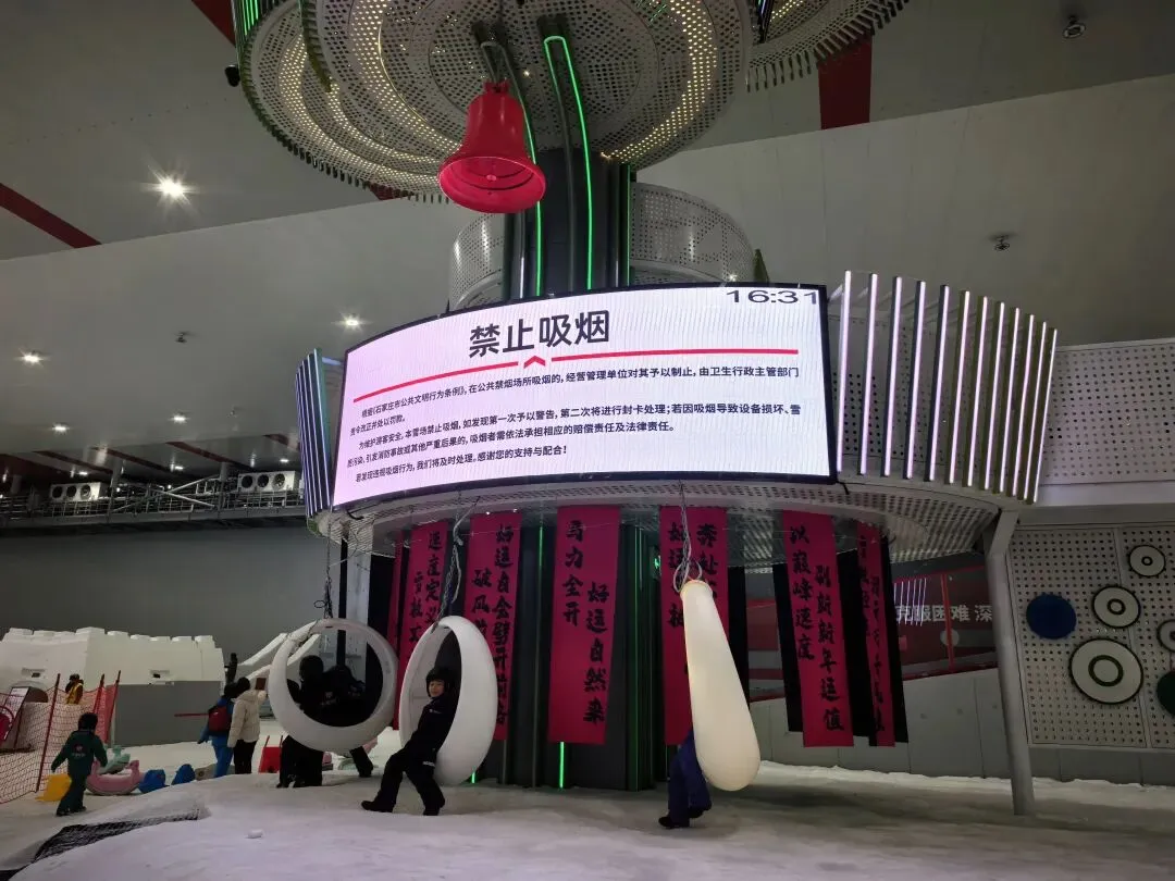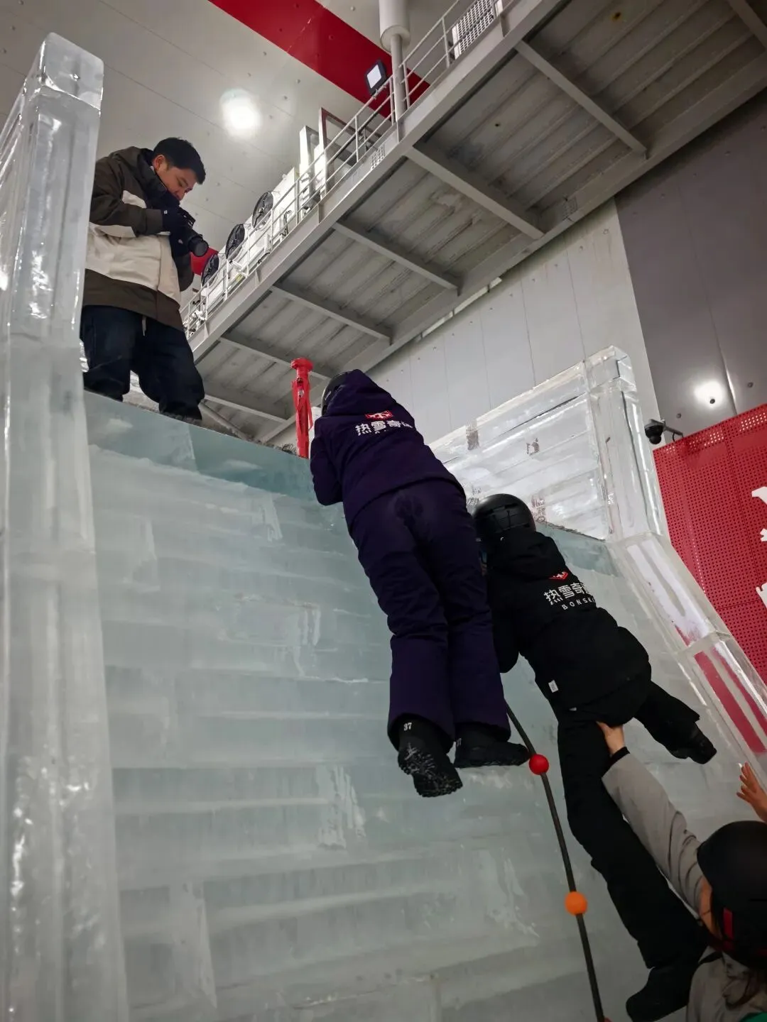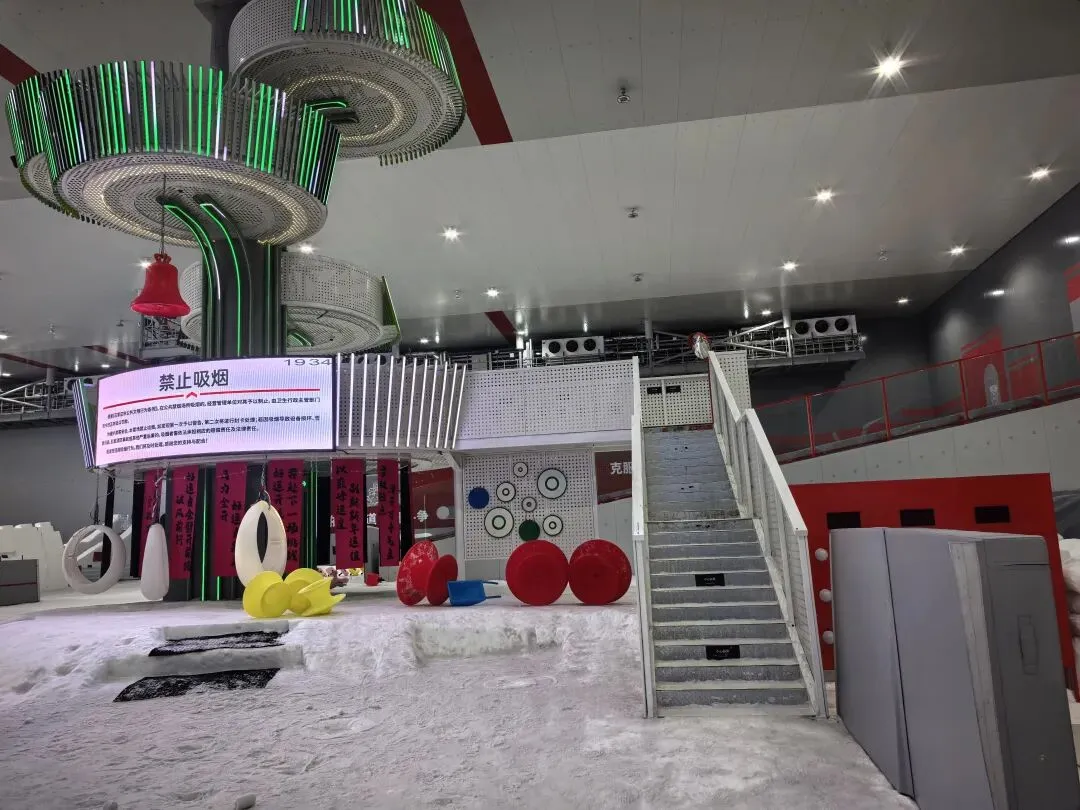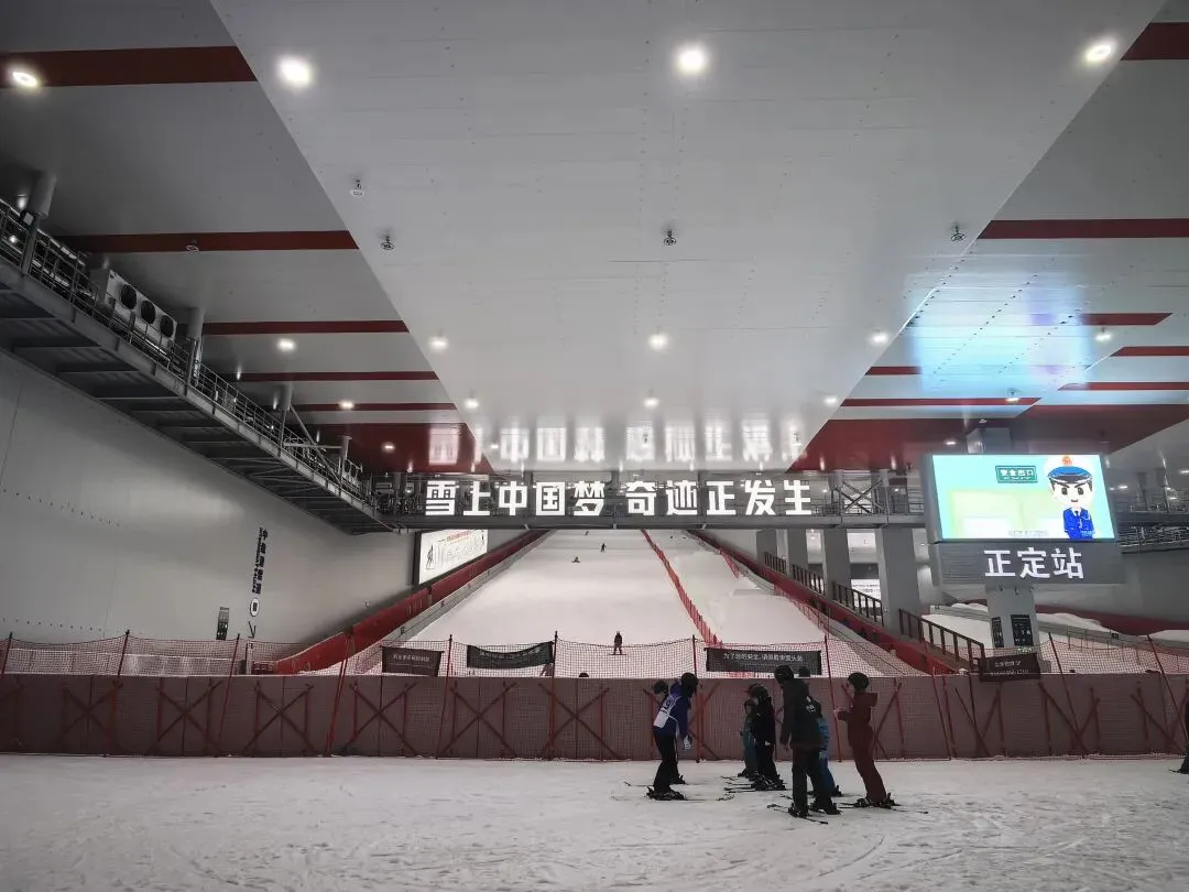 整个室内滑雪场分滑雪区和儿童游戏区。总建面超3万㎡,全年恒温-6℃;拥有130米初级道(8°)、255米中级道(13°),总长385米,最大落差46米;配套地形公园,雪质优良;另有约3600㎡冰雪乐园,含雪圈、雪上保龄球、地道寻宝等十余项亲子项目。应该是在里边能进行巷道战,但我们没有玩,不知道用什么枪械来打仗。是让小朋友玩雪滑梯的地方,我好多年不玩了,体验了一把。自己一个人拖着雪爬犁被传送带送到坡顶再滑下来,找回童年的快乐,好好玩!接下来玩雪圈,我拉着雪圈上了传送带,到了指定滑道,服务人员直接让小朋友坐好就推了下去,对我就反复叮嘱:注意双腿弯曲不要伸直,有可能会转方向,不要惊慌,注意不要碰雪道两边,防止受伤…… 看来我在一众小朋友里面显得太突兀了。对面初级道的最右侧,还有两个雪道可以玩雪圈,这两个雪道更长更陡,速度更快,玩起来更刺激。滑梯顶上有个拍视频的工作人员,正在抓拍小朋友们各种呲牙咧嘴的面部表情。虽远远比不上哈尔滨冰雪大世界的大滑梯,那么不妨在这个经晶莹澄澈的冰雪城墙上多体验几次。不知道怎么办玩,就几个圆形金属块,滑一滑,碰一碰,中了红心就走。最后说回雪道,这里有中级道和初级道两种坡道,官方介绍最长的有255米,手机拍摄有些失真,当真正站在这个雪道面前,或者站在雪道顶端,面对这个陡峭曲折的坡道一定会有所敬畏而胆怯。想一想上一次滑雪还是在多年前,大学刚毕业,零基础的我,靠着小时候打冰溜的技能,踏着滑雪板杵着两根滑雪杆调整方向,从户外滑雪场的大坡道直接滑下,反反复复,乐此不疲,成功率很高,偶尔摔一次也不妨事,不禁感慨年轻真好。不时有踏着单板直接冲下,飞过一道道坡面障碍的,也有滑不过障碍跌倒的,在我眼中这些都是专业玩法了。当天的活动含一项滑雪基础教学,我和同事们主要任务是围观,一切交给教练。待在这里不活动的话一会儿就冷得站不住了,身上冷脚也冷,滑雪服只是一件防水面料的薄棉袄而已,御寒能力远不如羽绒服,雪场内实时温度是零下6度,同事们都没想到温度如此之低,换衣服时都轻装上阵,内里只是件薄毛衫。等小朋友们在教练的带领下上了雪道,赶紧出来在点餐区补充热量,烤肠鸡米花墨鱼丸热饮,大家一起补充了个遍。夜幕降临,部分同事和小朋友仍旧玩性正浓,我说我要回家。出门向停车场走去,想想这次只玩了整个雪场一半的面积,就觉得热量消耗巨大,如果南边那一半区域开放的话,这体量和规模,不愧是整个华北地区排第一名的。斜对面是正定酒厂,大红的标语,独特的外观,颇有上个世纪热血沸腾年代的感觉。晚上回到家,队友说你怎么脸这么红,好像还大了一圈,我摸了摸,挺烫,照镜子一看,的确满脸潮红,可能是滑雪场的温度过低导致的,除了头盔和眼镜的保护区域之外,都红了,两天之后我右脸颊还有一块红印,寒冷的杀伤力真大。队友开始感慨:玩冰雪运动不容易、东北人民的生活、抗联、单衣赴朝的志愿军战士……由于本次活动是单位福利,到底消费了多少我也不知道也不好问,雪场内有购票二维码,这是扫码可见的价格,但是否包含滑雪服棉靴和头盔不得而知。感觉当天的游客占比并不大,大多是家长带着小朋友来参加研学活动的,整体来看,正定热雪奇迹是既适合亲子体验也适合专业人士游玩的室内冰雪乐园。从场地与设施来说,雪质稳定、雪道分级清晰,配套装备齐全、取用方便,省去不少准备麻烦。从安全与服务上看,现场指引清晰、防护到位,对小朋友十分友好。目前正在打造室内雪上研学基地,将冰雪运动与红色教育、正定历史文化结合,打造“冰雪+研学+古城”模式 。总之,这里硬件条件优越,服务细节到位,兼顾专业性、安全性与趣味性,如果消费水准跟得上的话,推荐打卡。