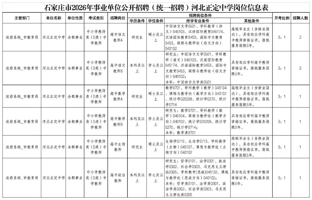 百廿正中,求贤若渴;薪火相传,诚邀英才。2026年,为持续优化师资队伍结构,夯实学校高质量发展根基,河北正定中学面向全国公开招聘优秀教师,诚邀怀揣教育热忱、兼具专业素养与责任担当的教育同仁,共绘基础教育高质量发展的崭新蓝图!