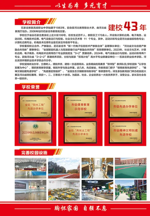 石家庄教联高级职业中学,作为省级重点中学,自 1983 年创立以来,建校43年,始终致力于为学生提供优质的职业教育与升学渠道。2026 年春季招生现已全面开启,期待有志青年的加入!