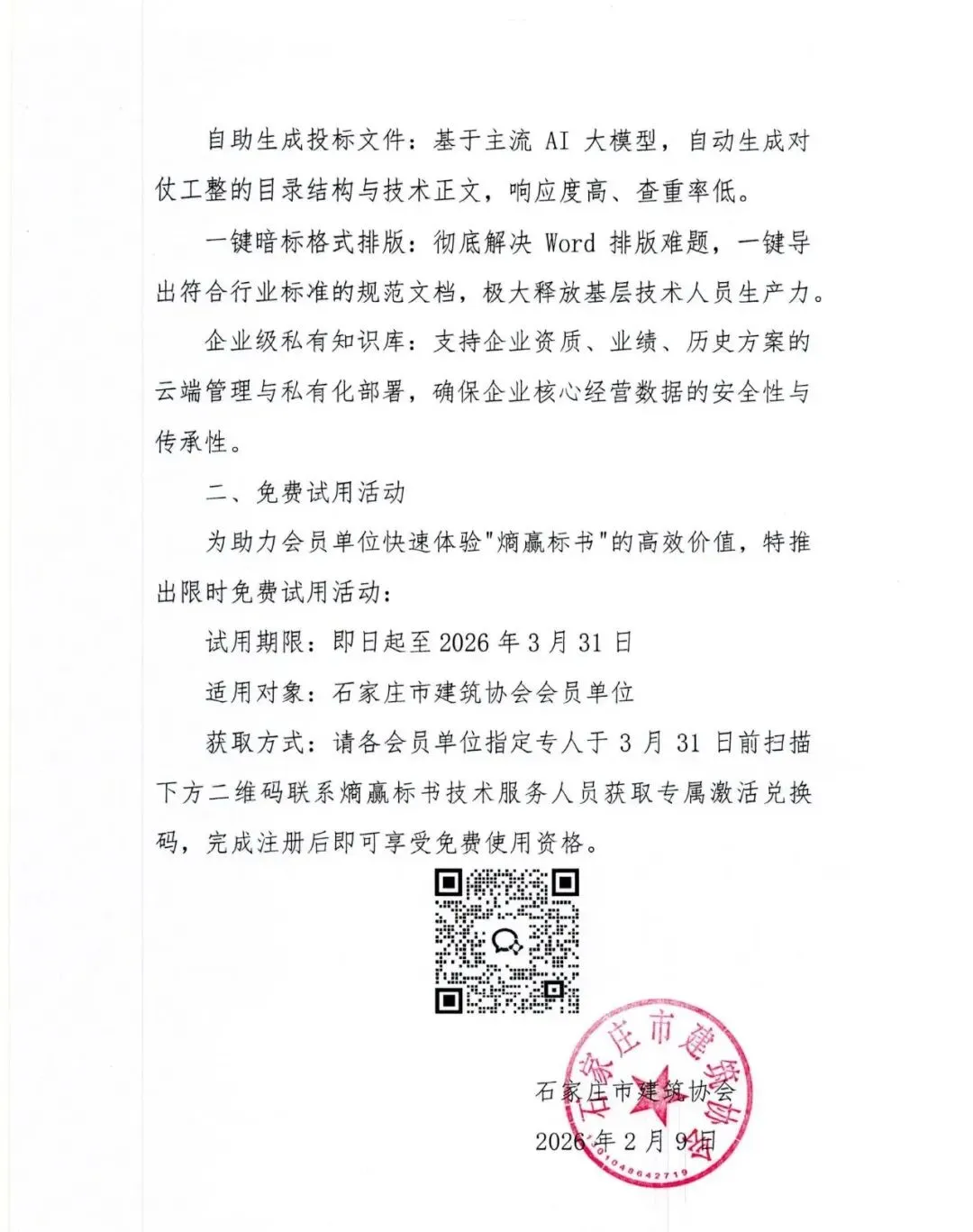 石家庄市建筑协会关于推广使用"熵赢标书"AI智能投标文件辅助工具的通知