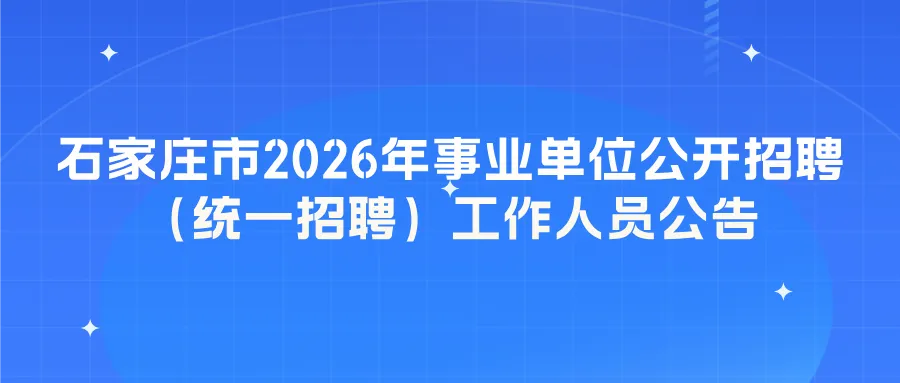 为加强石家庄市事业单位人才队伍建设,根据《事业单位人事管理条例》《河北省事业单位公开招聘工作人员暂行办法》《关于进一步做好全省事业单位公开招聘工作的通知》,现面向社会公开招聘事业单位工作人员。有关事项公告如下: