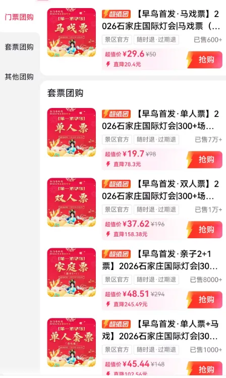 注:具体票种及价格以购票平台展示为准,石家庄本地宝不售票,仅提供官方购票入口