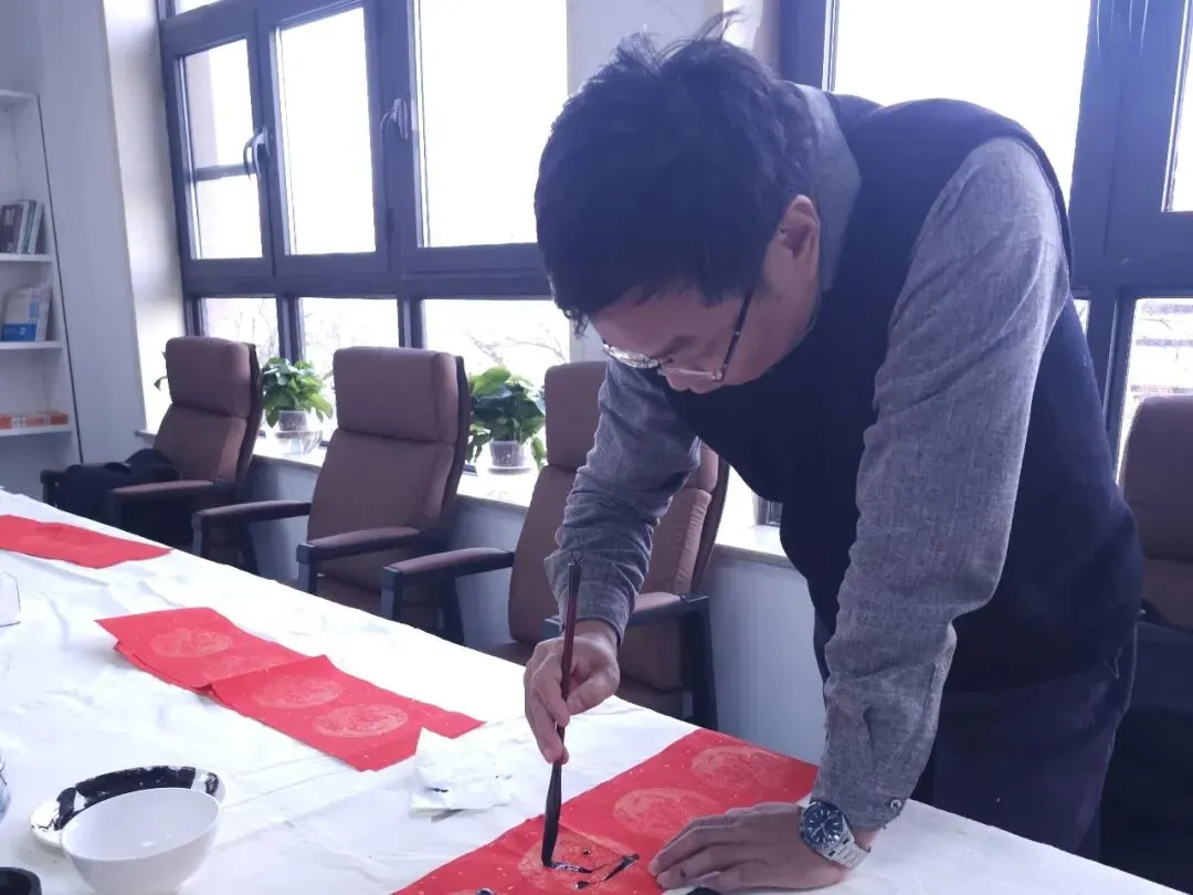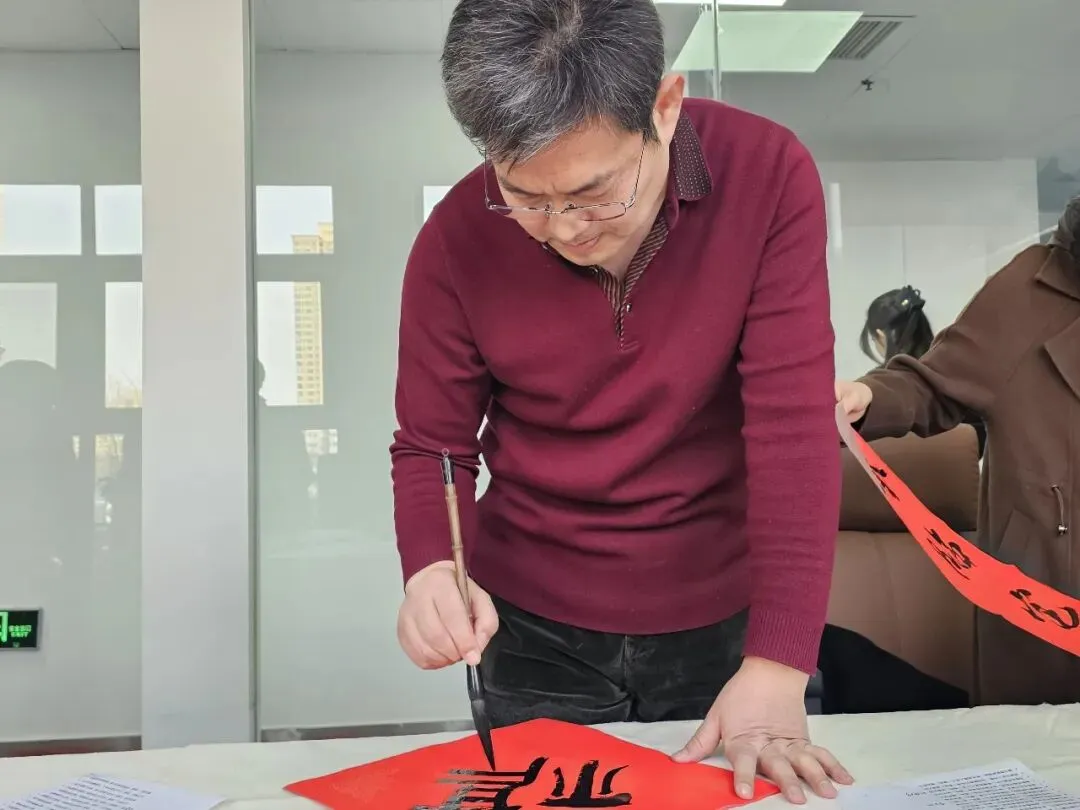 我会监事长兼书画院院长鲁平,书画院书法家李彦勇、唐诗云、郭东兵、董培升应邀出席,现场挥毫创作,以笔墨寄情,以春联送暖。活动现场气氛温馨热烈,墨香沁人。书法家们倾情书写,将美好的新春祝福融入一幅幅笔力遒劲的春联和形态各异的“福”字之中。离退休老同志纷纷驻足观赏、品评交流,并挑选自己喜爱的联句请书法家题写。活动不仅让老同志近距离感受到书法艺术的魅力,更在笔墨交融中营造出文明祥和、情意融融的节日氛围。