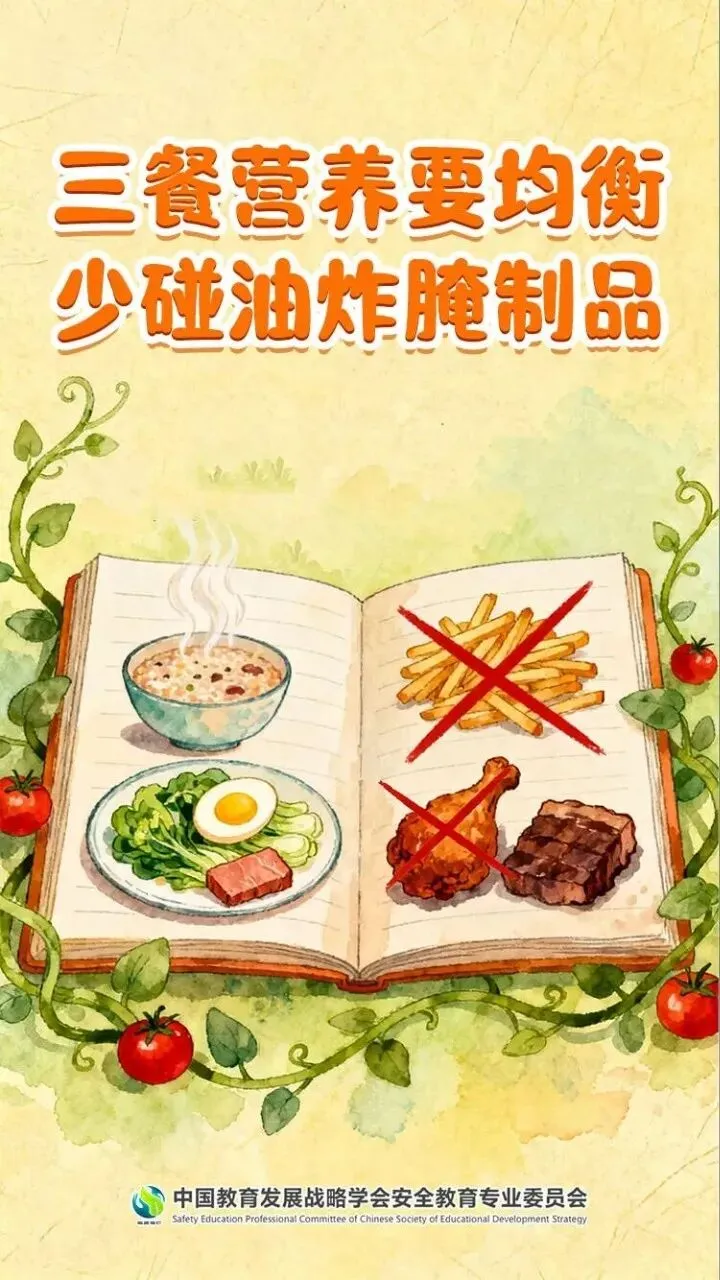 (3)健康饮食:不暴饮暴食,注意营养均衡,不吃“三无”食品和过期食品。
