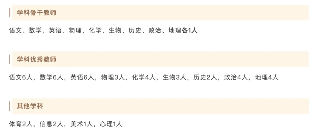 招聘岗位:初中英语教师2名、初中物理教师2名、初中数学教师2名、初中化学教师2名