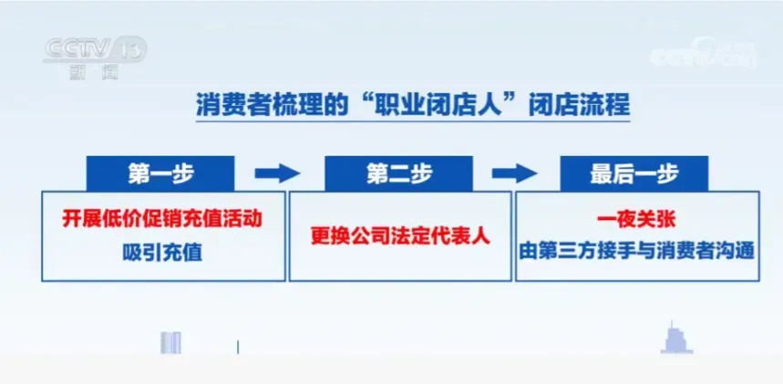 他们圈钱,我负责闭店跑路 “职业闭店人”简单来说,职业闭店人的主要工作是通过经营不善的公司策划关店和退出市场的方法,同时接手处理后续的维权问题,然后按照债务比例收费。跑路商家的债务动辄高达百万,甚至千万,这也意味着“职业闭店人”一单的提成可能在十万到百万之间。不过大众还不知道的是,在为商家制定“零风险”的退出策略的同时,职业闭店人还有更多的创收手段:例如,接手店铺后以各种名目搞促销、吸引消费者充值,进一步积累财富,此外再对资产进行多处抵押、多方套现,实现利益最大化。因此,在社交媒体上,“职业闭店人”被一些人归类为“高薪但肮脏”的黑产职业之一。和电诈产业一样,“职业闭店人”内部分工明确,要成功帮助老板闭店,需要前端和后端两个部分的成员配合。前端称为“底狗”,负责前期工作,如揽项目、和老板谈合作、找背债人办理变更法人等。随后,被称为“看门狗”的后端团队介入,负责店铺运营、关门以及处理售后纠纷等业务。为了在法律上确立新的经营主体,避免原老板因为店铺的债务问题而受到法律追究,职业闭店人还会以更换法人和股权、缩减注册资本为例,更换法人代表和股权结构。为确保上一位老板成功“上岸”,也会有专门运营团队维持店铺的日常运维,直到老板“无论如何走司法都牵扯不到关系”后,紧急闭店。