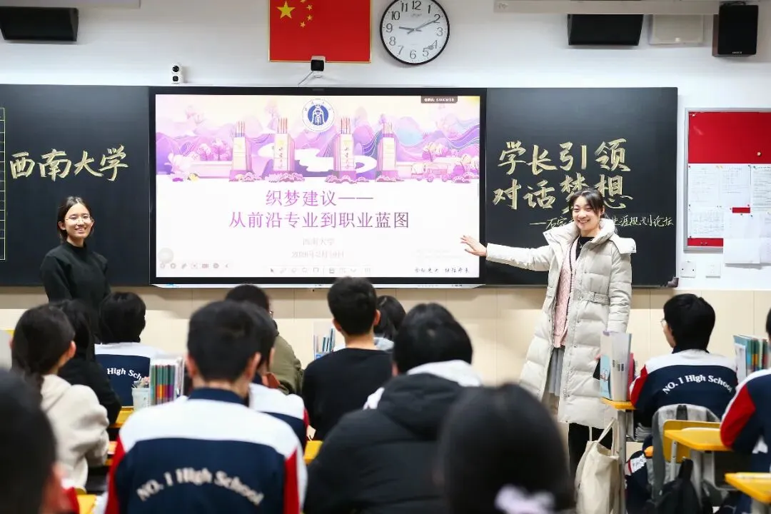 两校区报告厅的集中宣讲结束后,本次论坛进入核心环节——返校的大学生们化身“青春引路人”,走进两个校区的各个班级,开展近距离、面对面的交流宣讲,让分享更具针对性、更有温度。
