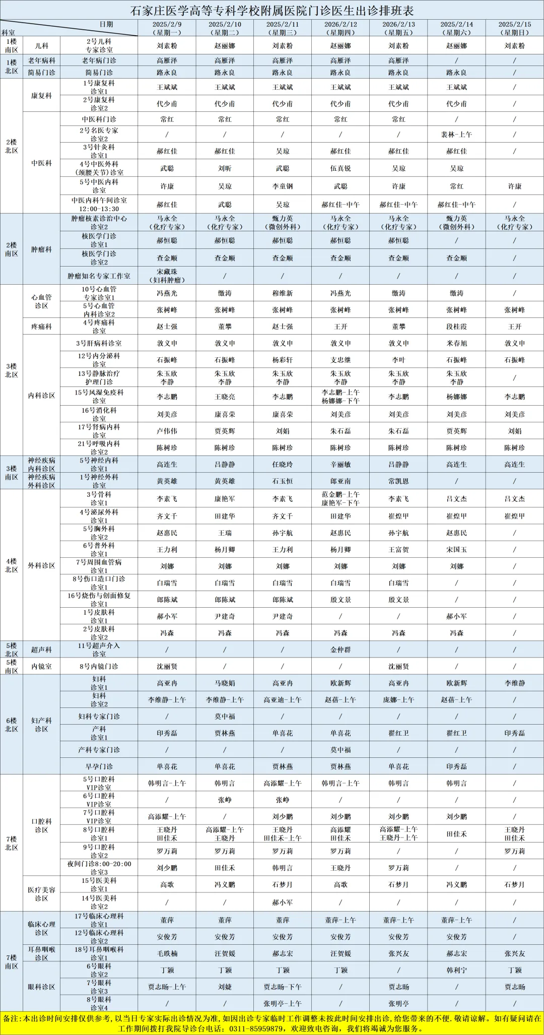 医院开设预防保健科、内科、外科、妇产科、儿科、眼科、耳鼻喉科、口腔科、皮肤科、医疗美容科、肿瘤科、急诊科、重症医学科、康复科、麻醉科、医学检验科、病理科、医学影像科、中医科等50余个一、二级临床、医技科室,能够完成疑难、危重患者的多学科综合治疗。