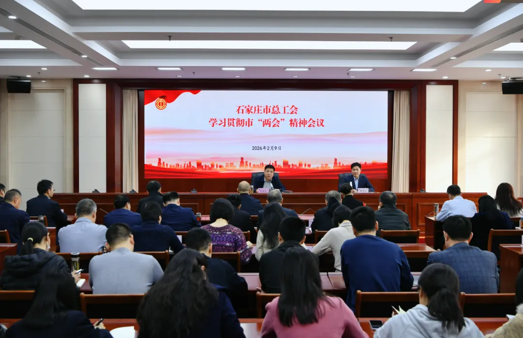 2026年2月9日,石家庄市总工会召开全体会议,传达学习市十五届人大七次会议、市政协十四届六次会议精神。市总工会党组书记、常务副主席彭勇民主持会议并讲话。市总领导班子成员、机关全体干部职工、直属事业单位主要负责同志参加会议。