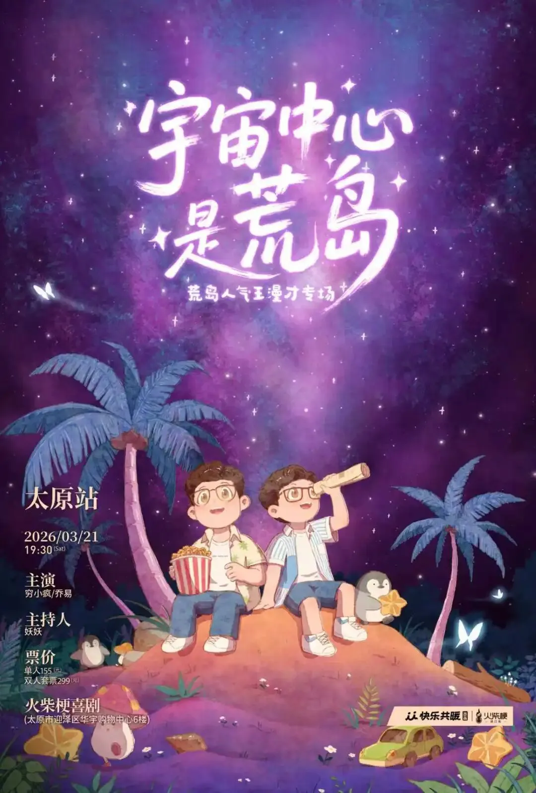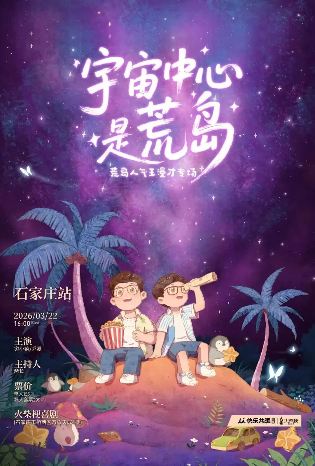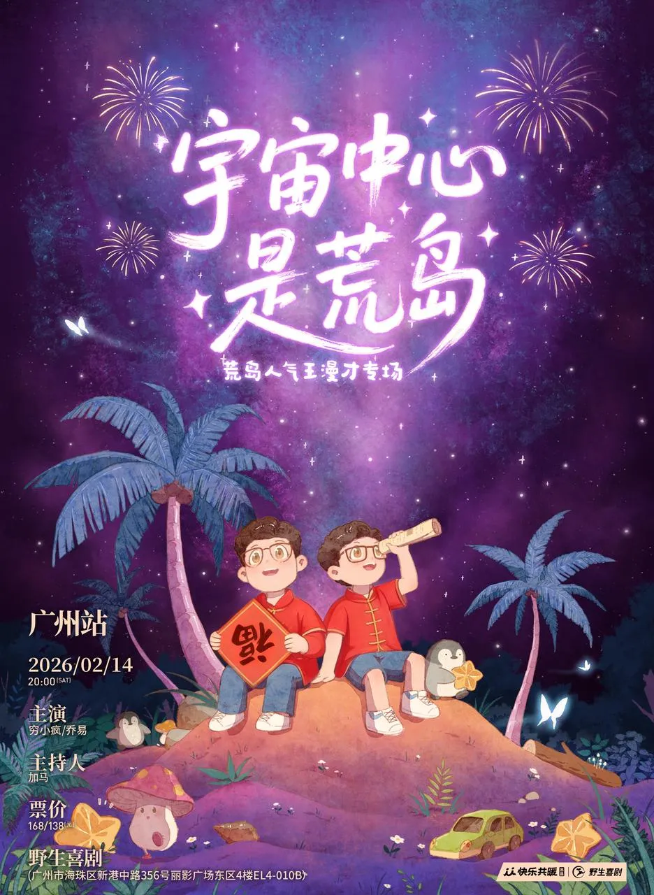 荒岛人气王漫才专场「宇宙中心是荒岛」2026巡演年后继续,星图相继点亮:太原、石家庄、郑州、洛阳。邀请你与我们一同,将新年的马蹄印化为星际轨道,以梦为航,以笑为力,奔向宇宙深处的快乐奇想。